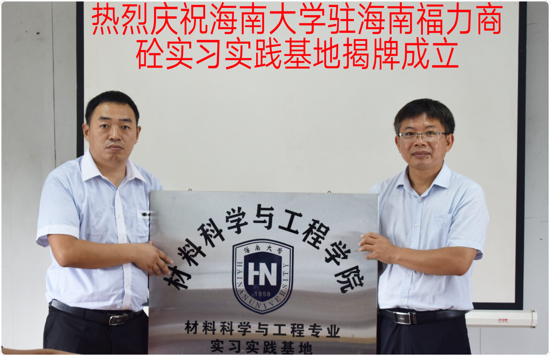2019年6月26日下午,太阳成集团tyc33455胡先文副书记和陈永副经理带队考察海南福力商砼和海南恒宝两家公司,亲切慰问正在公司参加实习实践的同学,并出席太阳成集团tyc33455官方网站材料科学与工程专业在两家公司的实习实践基地揭牌仪式。公司材料系李长久主任和涂进春副主任陪同参与了两家公司的洽谈和揭牌仪式。