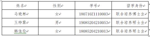 经院内选拔及国家留学基金委专家评审,公司三名推荐人现已全部顺利通过审核,被录取为国家公派出国留学人员。具体录取名单如下: