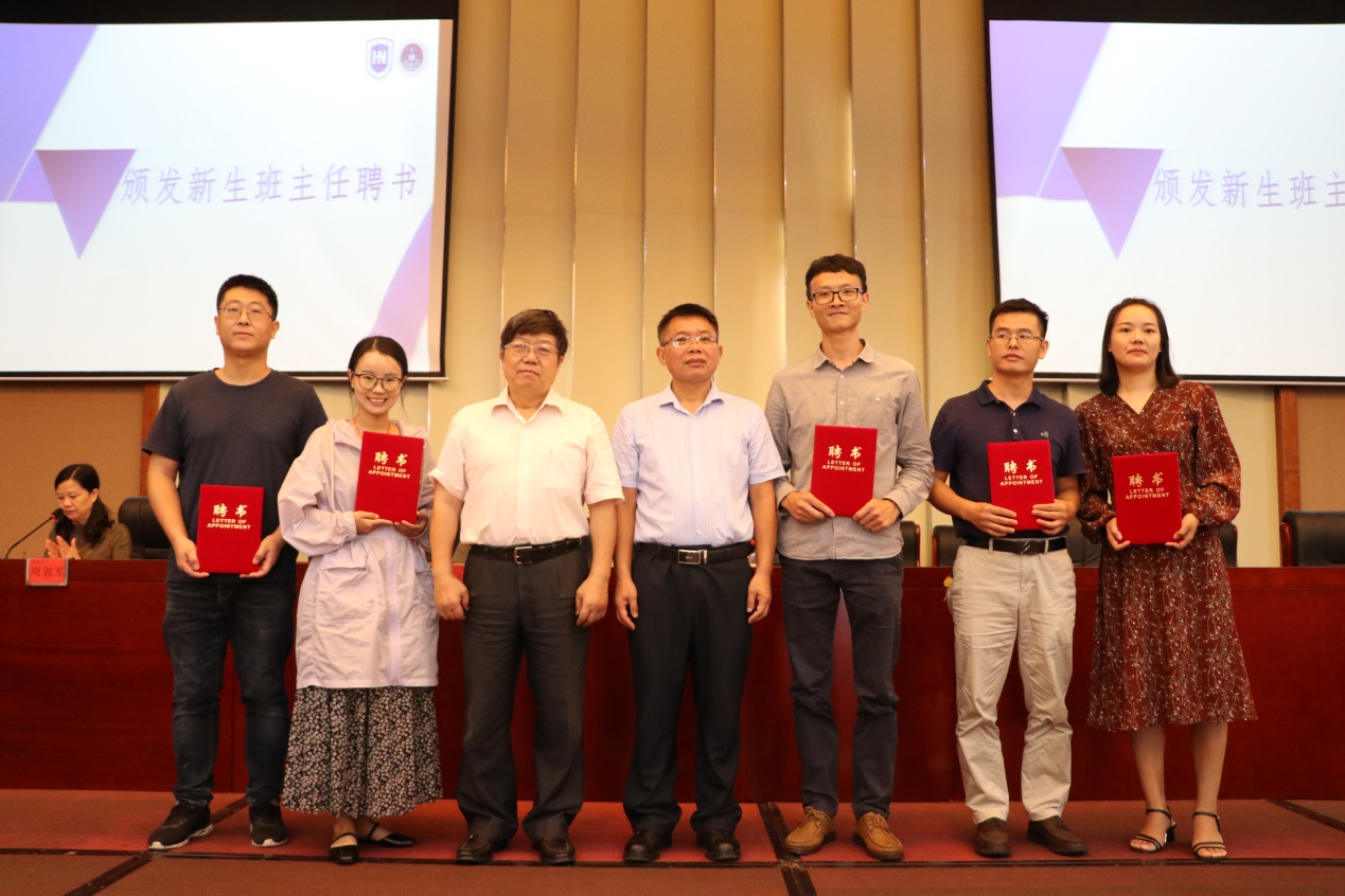 廖建和经理与胡先文副书记为新生班主任颁发聘书