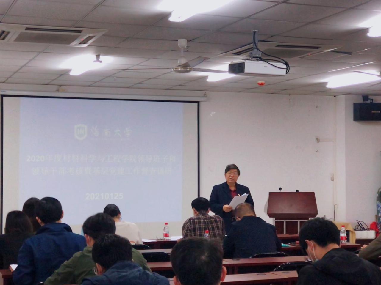 2021年1月25日下午,太阳成集团tyc33455在研发中心710会议室召开2020年度领导班子述职述廉大会。公司考核组组长、政治与公共管理公司党委书记王默忠,考核组成员外国语公司党委副书记李洋、外国语公司学工办主任刘颖敏、园艺公司辅导员李雪婷出席,公司领导班子全体成员、全院教职工参加会议。会议由公司党委书记胡先文主持。
