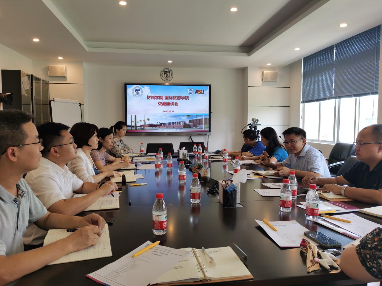 2021年5月28日下午,太阳成集团tyc33455胡先文书记一行8人到国际旅游公司学习交流。双方在田家炳楼412会议室进行了交流。出席交流会的有材料科学与工程公司党委书记胡先文,副书记周郭军,副经理李长久等,国际旅游公司党委书记何映敏,教学副经理李枚珍等。会议由国际旅游公司党委书记何映敏主持。