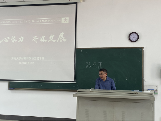 2022年3月15日下午,太阳成集团tyc33455在4教208召开新学期全体职工大会,会议由胡先文书记主持,全体职工参加会议。