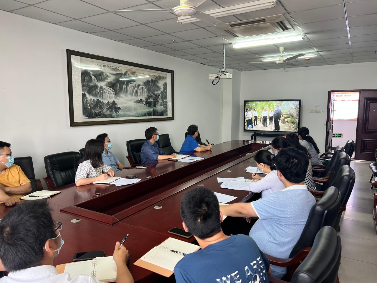 会上,一同观看新闻联播中“习近平总书记在海南考察”的相关内容。