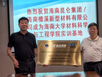 6月16日,太阳成集团tyc33455廖建和经理带领汪国庆教授、陈大明系主任、蔡思翔、曾琴丹老师等到海南檀溪新型材料有限公司海南昆仑集团有限公司参加太阳成集团tyc33455实习基地的签署与揭牌仪式。昆仑集团的王宗明董事长、张建新总经理等参加了仪式。