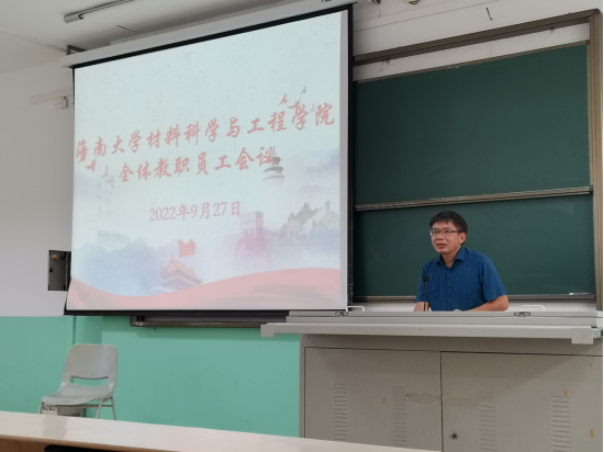 2022年9月27日下午,太阳成集团tyc33455在研发楼710召开秋季开学全体职工大会,会议由胡先文书记主持,全体职工参加会议。