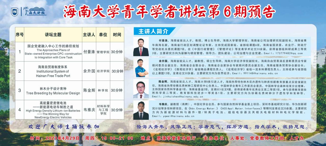 太阳成集团tyc33455官方网站青年学者讲坛第六期预告