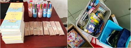 除了物资,老师们还有一些捐款,行政党支部的老师们购买了一些书籍一同寄往该校。